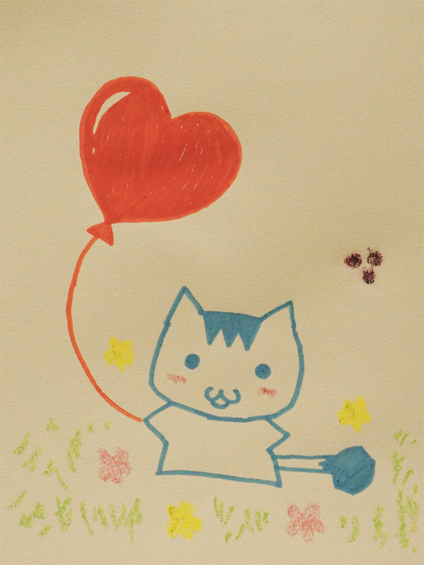 ハートを風船を嬉しそうに持っている。きっと人間の子供並みのIQはあるのだろう。