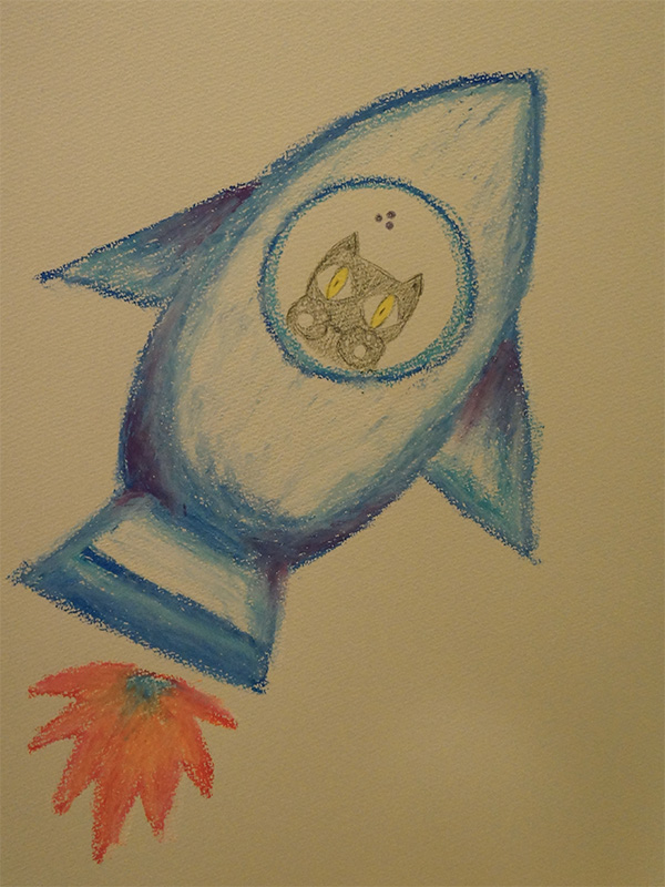 合作である。ロケット、我画。搭乗員、Peace画。