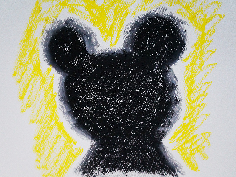 「威圧的な雰囲気」にしようとしたが、光の中へ歩いてくように見える熊。
