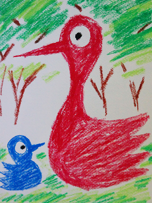 我念写物2。赤い鳥と青い鳥。なんか昔、こんな形の温度計を見た覚えがある。