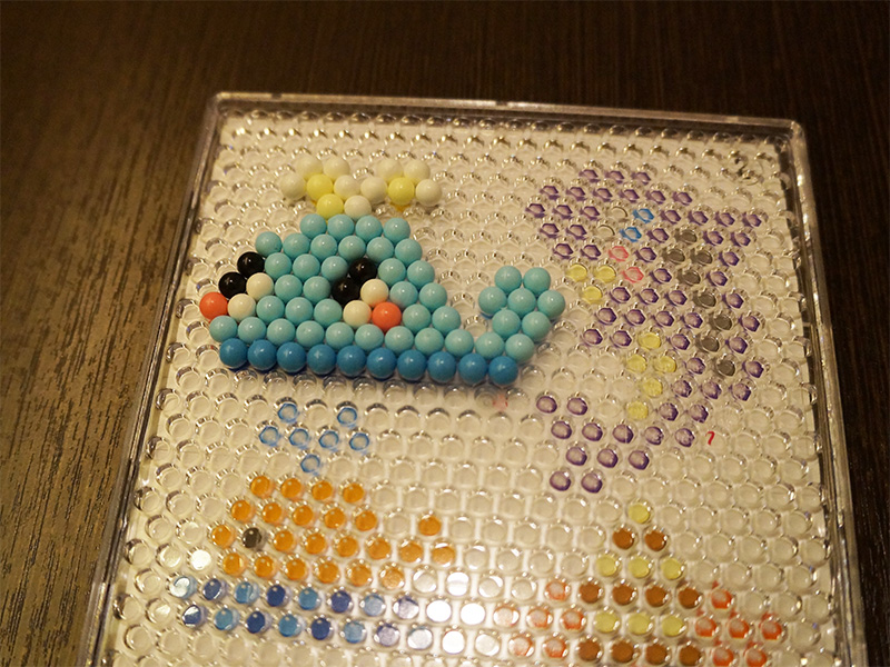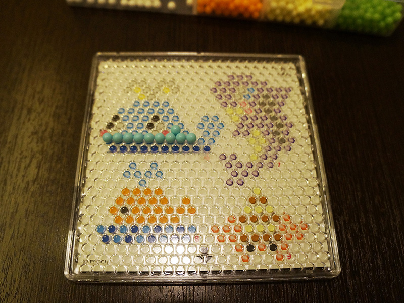 アクアビーズは初心者なので、絵柄シートを参考にする。
