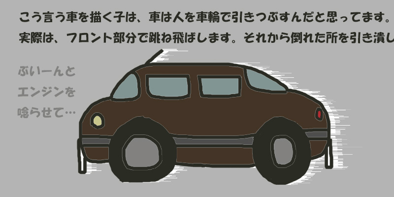 早くて18で運転免許を取って、まぁ、長くて70歳で車の運転をやめたとすると、52年間「車様」を足として使う事になるわけだから、全ての道は「車様のための道路」だと思うようになるのか。