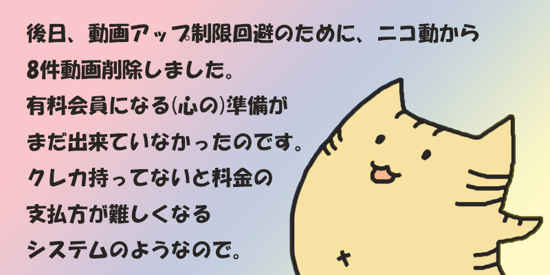 通常状態で自分のダメさとか気づいてしまったので、「俺って創造には向いていない人なのだろうか」とか、「もうやめたほうが良いのかな」とかまで思いつめたんですど、アニメーションを作るようになったのも、ほんの3ヶ月くらい前から出し、アニメーションを面白がるがあまりに変な猫のアニメ作って勢いでYouTubeにアップしたのは3日前じゃないかって言う所で、踏みとどまったんですよ。