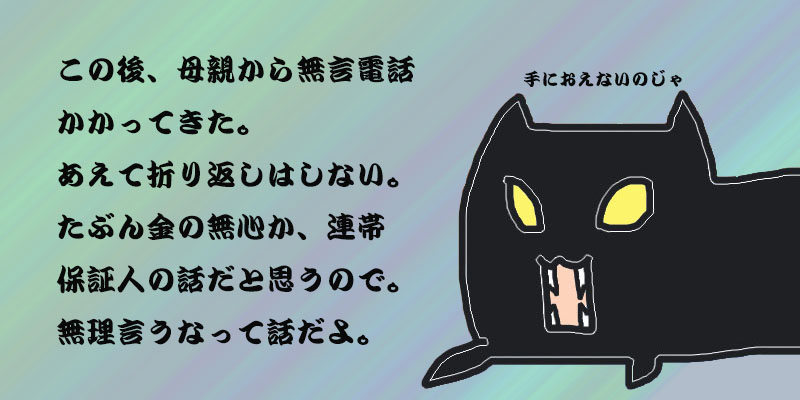 これでは、僕個人の生活が成り立たないので、明日の仕事が終わったら、今後兄から「お願い」をされても断ります。もうね、あの二人に関わってると疲れるのです。