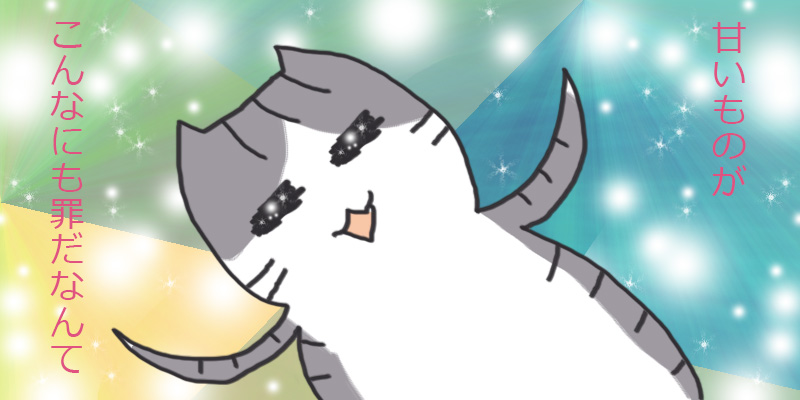 空はまだ青いけど夕陽色の雲が浮かんでいて、そろそろ夕ご飯の時間です。だけど、さっき、果物をお腹いっぱい食べてしまった。なので、今日の夕飯は「ガトーレーズン」のキャラメル味を一個で良いです。