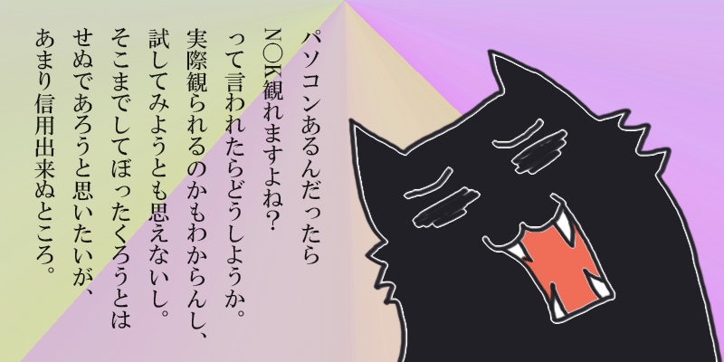 念のためにウェブで調べてみたら、テレビを置いていない家は受信料を払わなくて良いらしい。我が家はこれに該当するので、電話で理由を話してみよう。人員を派遣するのでおうちを見せてもらって良いですかって言われたら、どうぞ見に来て下さい。僕の仕事に差し支えない日取りで。