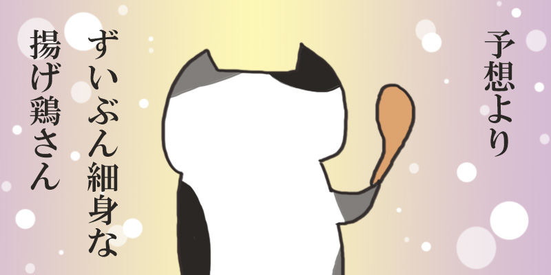 今日の非日常感としては、カーネルサンダースさんが始めた揚げ鶏肉の調理法を使っている鶏肉屋さんに行って、千三百三十円と引き換えに鶏肉塊を三つと飲み物と揚げ芋をもらって来ました。