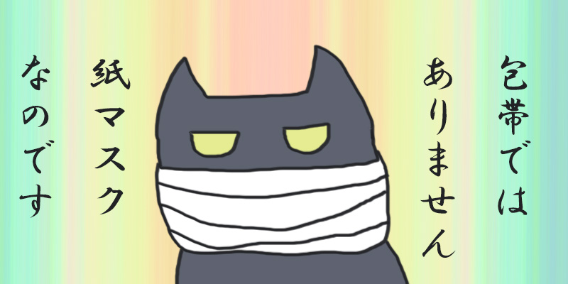 普段の僕の外見ですが。でっかい白い紙のマスクをしていて。よっぽどの事が無い限り、目元以外を髪の毛で隠しています。